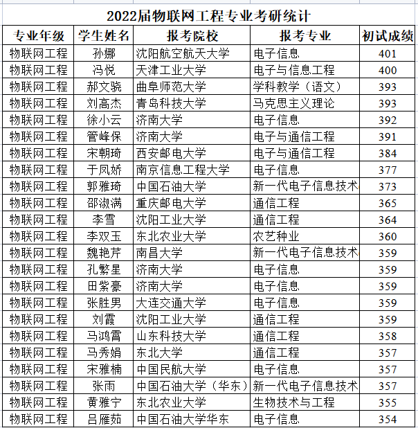 2016年,以专业为核心组成的物联网专业群获得山东省高水平应用型专业群立项建设。2018年,获批山东省电子、物联网培训基地。2019年,获批山东省一流专业、德州市物联网智能传感技术与应用工程实验室、校级卓越工程师专业建设项目;近三年,毕业生平均考研率近30%,就业率90%以上。