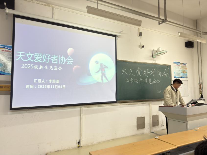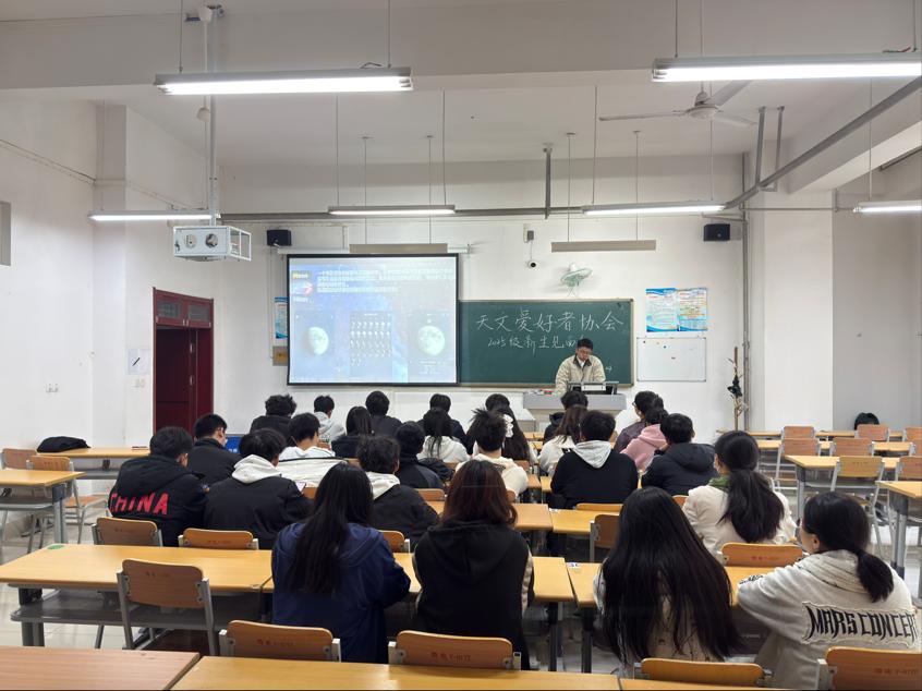 见面会开始后,主讲人简要介绍了天文爱好者协会的创立初衷、发展历程及核心活动方向,包括星空观测、天文知识讲座、科普实践等特色内容,鼓励新成员们在社团中尽情探索宇宙奥秘、结交同好。同时,主讲人通过精彩的星空影像、趣味天文案例,由浅入深地分享了基础天文知识,还展示了社团观测设备与过往活动成果。同学们纷纷表示被奇妙的宇宙世界所吸引,对后续的观测活动和知识分享充满期待,现场交流氛围热烈。