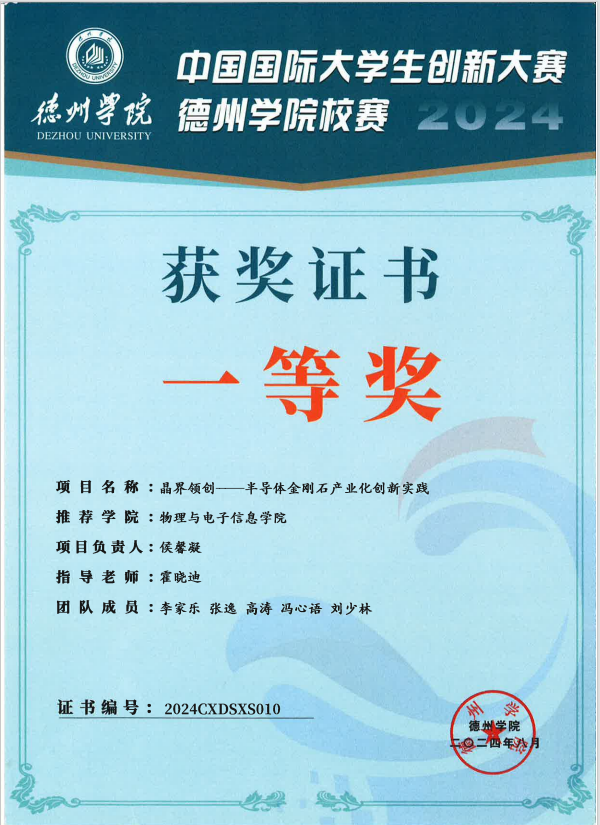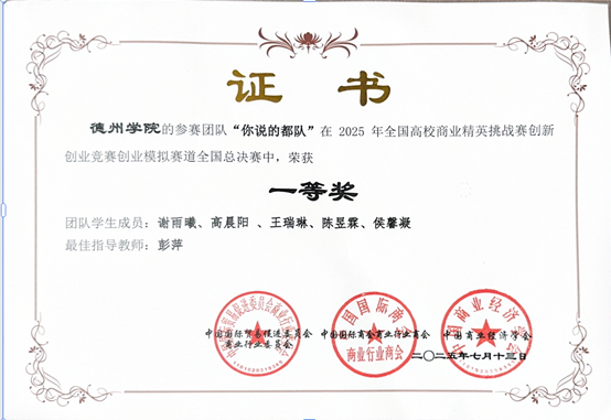 积极参与各类英语竞赛,在“山东省大学生科技阅读大赛””外研社国才杯””外教社词达人杯”多类赛事中展现出较强的英语能力,获得省校级奖项十余项。获得2025全国高校商业精英挑战赛全国一等奖、“大唐杯”全国大学生新一代信息通信技术大赛省三等奖、2024中国国际大学生创新大赛校一等奖等竞赛奖项。体育竞赛方面,2023年德州学院排球联赛女子第7名、体育嘉年华排球垫球王一等奖、冬季越野赛团队二等奖。